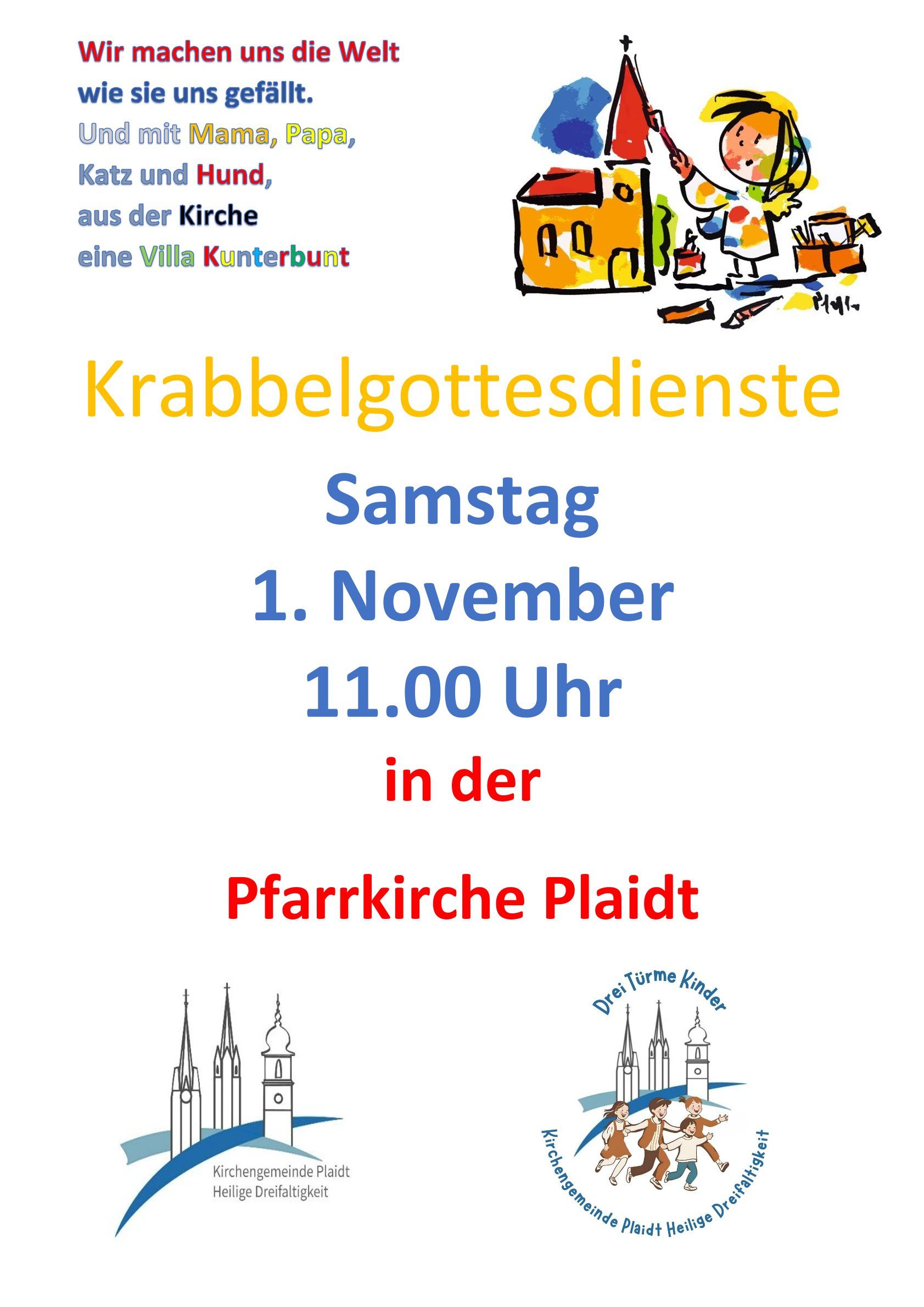 Der Familienkreis Sankt Willibrord Plaidt und die Kolpingjugend Plaidt haben eine gemütliche Spielecke in der Pfarrkirche St. Willibrord für Kleinkinder gestaltet. Hier können sich die Kleinen gemütlich mit ihren Eltern aufhalten und in Ruhe die Messen genießen. So wird der Besuch der Eucharistiefeier für kleine Kinder kurzweilig und für die Eltern entspannter.